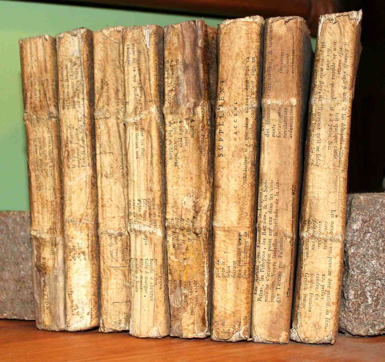 Otto volumi in 8°, ognuno contenente tre tragedie. Copertine dell'epoca con carta marmorizzata. Un alone alle prime pp. del secondo volume, mancanza all'angolo bianco di alcune pagine del sesto volume, leggeri segni di muffa alle prime carte del settimo volume. Non sono presenti illustrazioni come in altri esemplari.