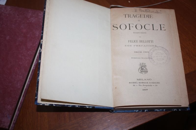 TRAGEDIE DI SOFOCLE FELICE BELLOTTI MILANO SONZOGNO 1897