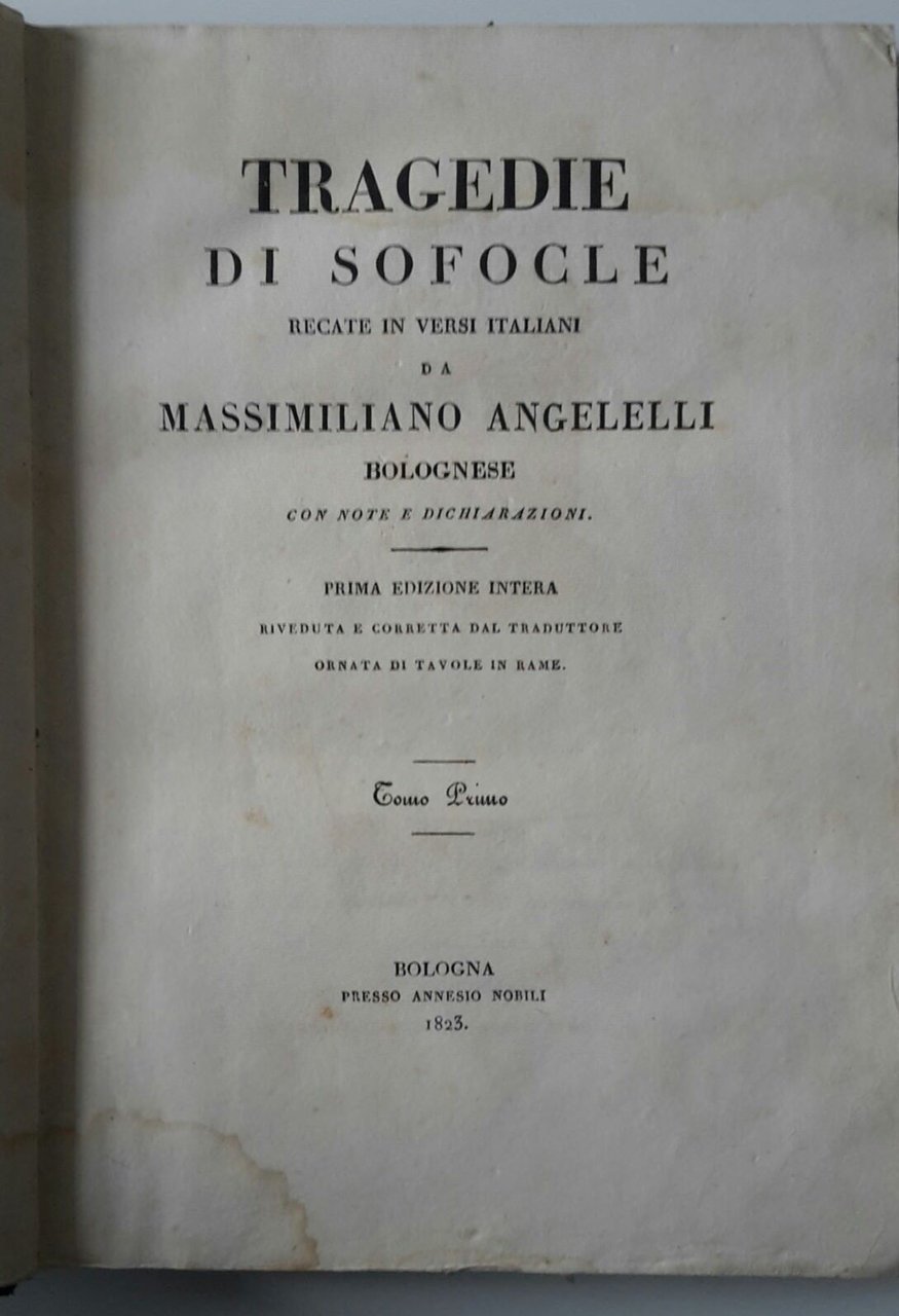 TRAGEDIE DI SOFOCLE RECATE IN VERSI ITALIANI DA MASSIMILIANO ANGELELLI BOLOGNESE CON NOTE E DICHIARAZIONI