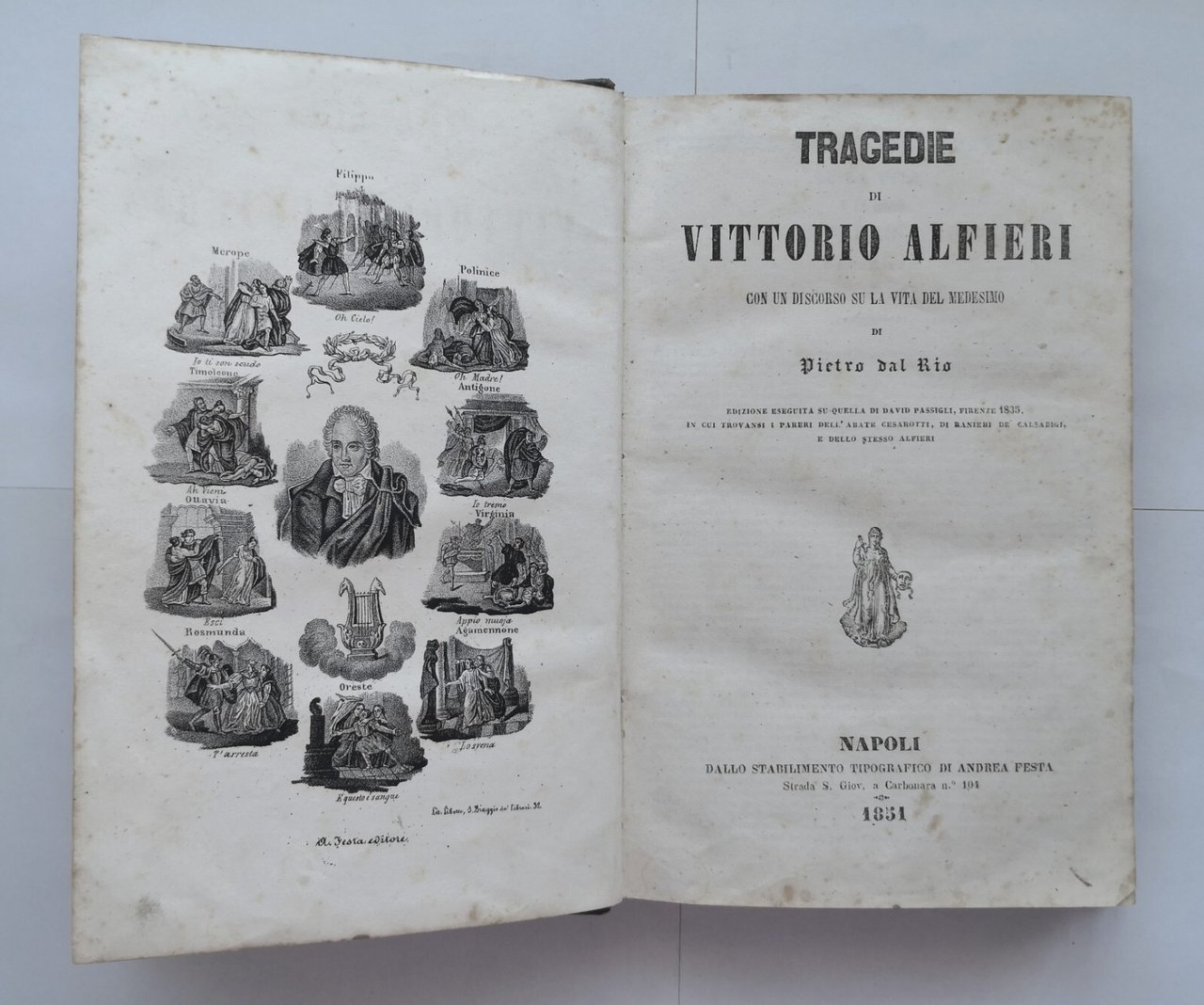 TRAGEDIE di Vittorio Alfieri cura Pietro dal Rio 1851 Andrea Festa Libro antico
