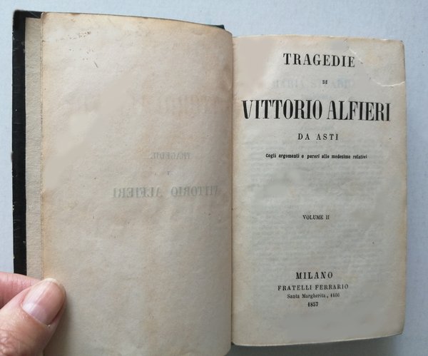 Tragedie di Vittorio Alfieri da Asti. Cogli argomenti e pareri alle medesime relativi. Volume II