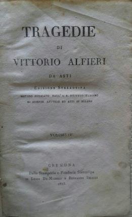 Tragedie. Edizione stereotipa. Metodo premiato dall'I. R. Istituto italiano di scienze lettere ed arti in Milano. Volume IV.
