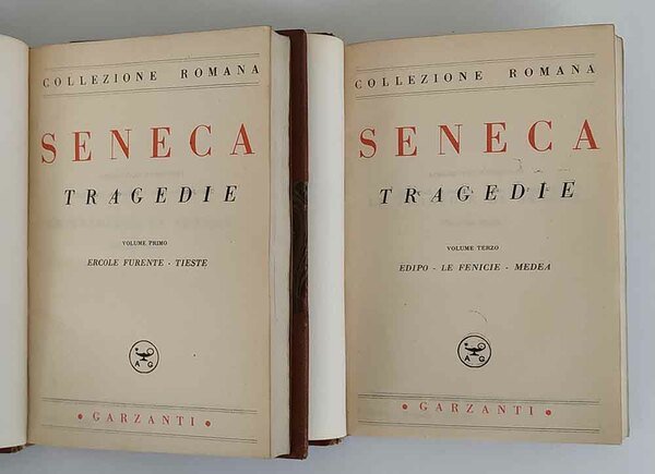 4 tomi in 2 voll.; in 16°; pp. 240; 290; 270; 300; leg. in mezza pelle con taglio in oro. Le Troiane - Agamennone - Ottavia - Ercole furente - Tieste - Ercole sul monte Oeta - Ippolito - Edipo - le Fenicie - Medea. Testo in italiano - latino