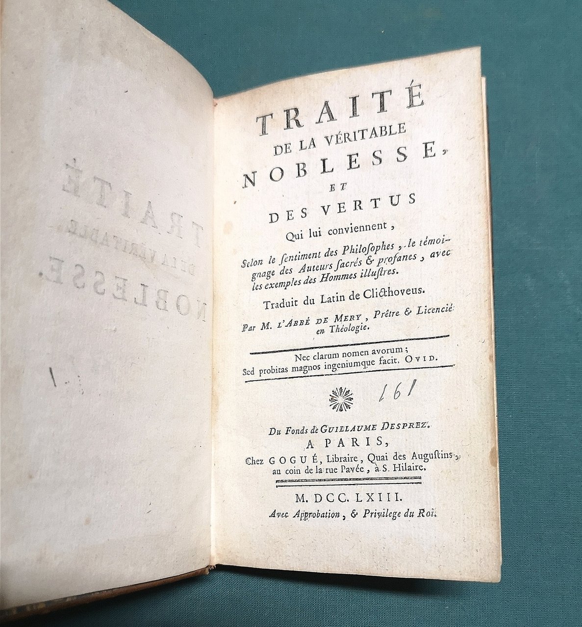 Traité de la véritable noblesse et des vertus qui lui conviennent.  Traduit du latin de Clicthoveus par M. l'abbé de Mery...