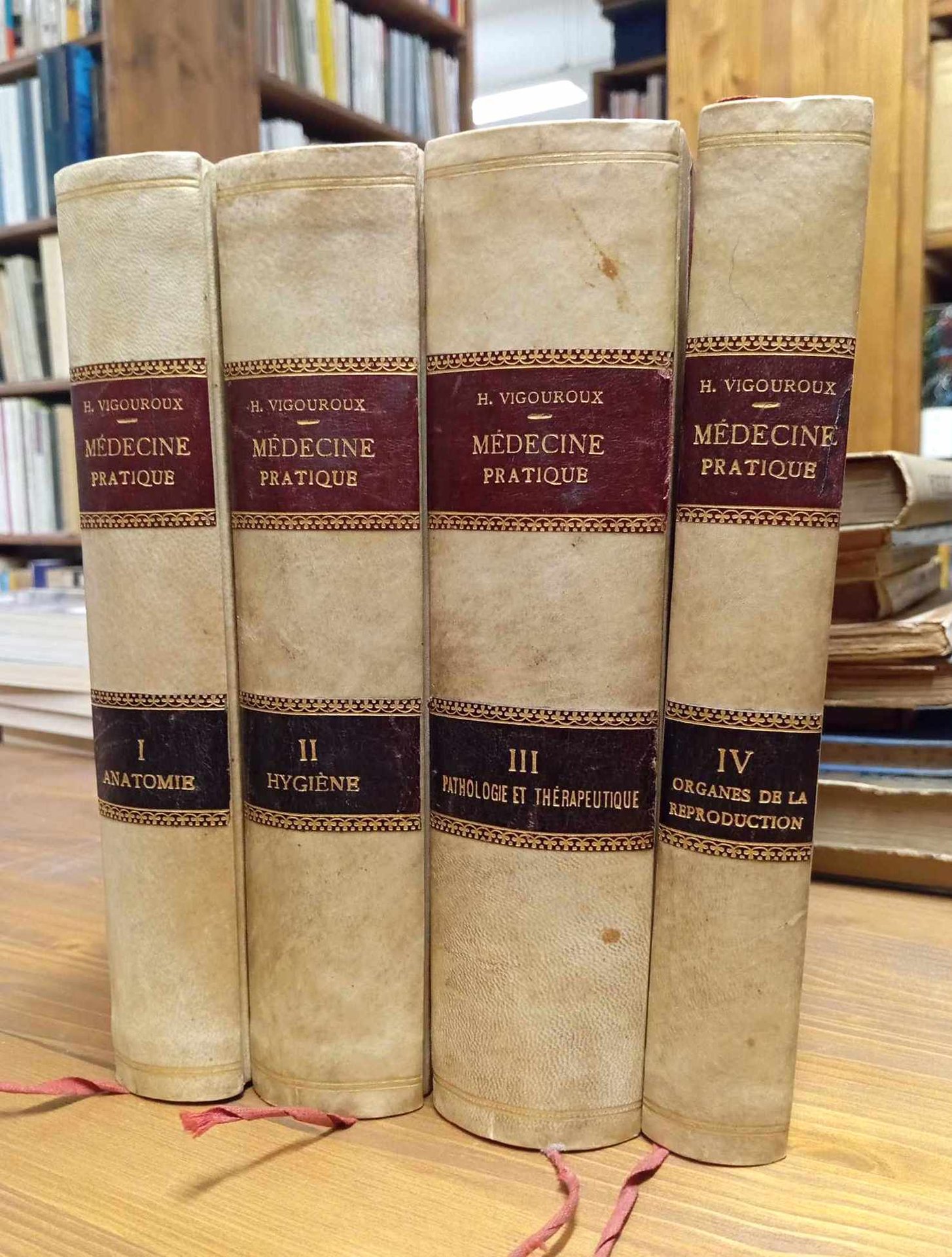 Senza data, ma intorno al 1900. Quattro volumi rfilegati in mezza pelle con titoli in oro su etichette applicate al dorso, piatti in percallina, viii-472 + 595 + 710 + 364 pagine con figure in nero e tavole a colori nel testo redatto in lingua francese - French text. Copia in ottime condizioni con legature ben salde.