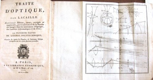 Traité d’optique, par Lacaille. Nouvelle Édition, revue, corrigée et augmentée, particulièrement de la Marche des Images dans les instrumens d’Optique, des Lunettes Achromatiques et de l’Iris; par plusieurs éleves de l’École Polytechnique; Ornée de toutes les Planches de l’ancienne Édition, auxquelles on en a joint plusieurs nouvelles.