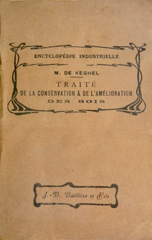 Paris, Librairie J.-B. Baillière & Fils, 1921. 4to.; 360 pp. Con 41 figuras, dibujos y reproducciones fotográficas tanto de maquinarias de tratamiento de maderas como pruebas de ignición y pirometría. Cubiertas originales. Lomera abierta.