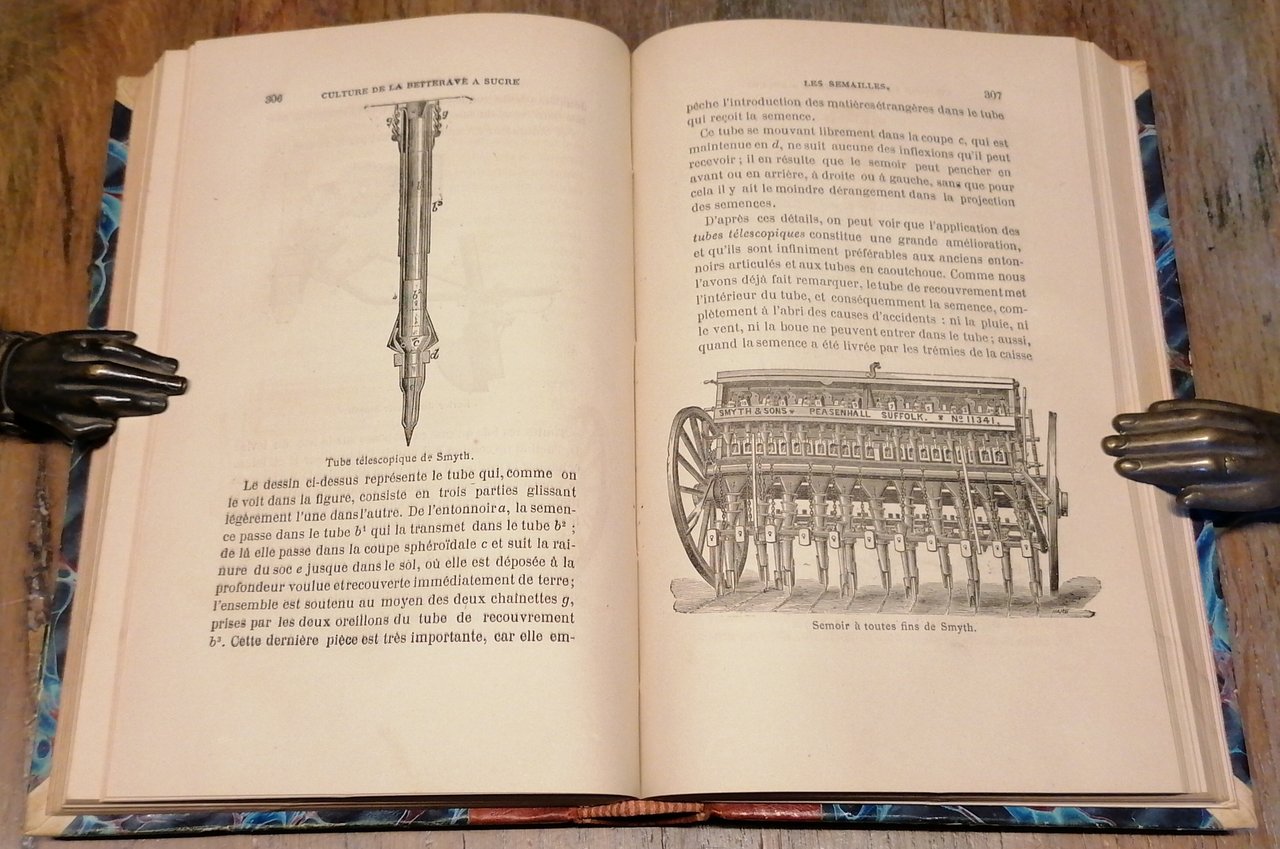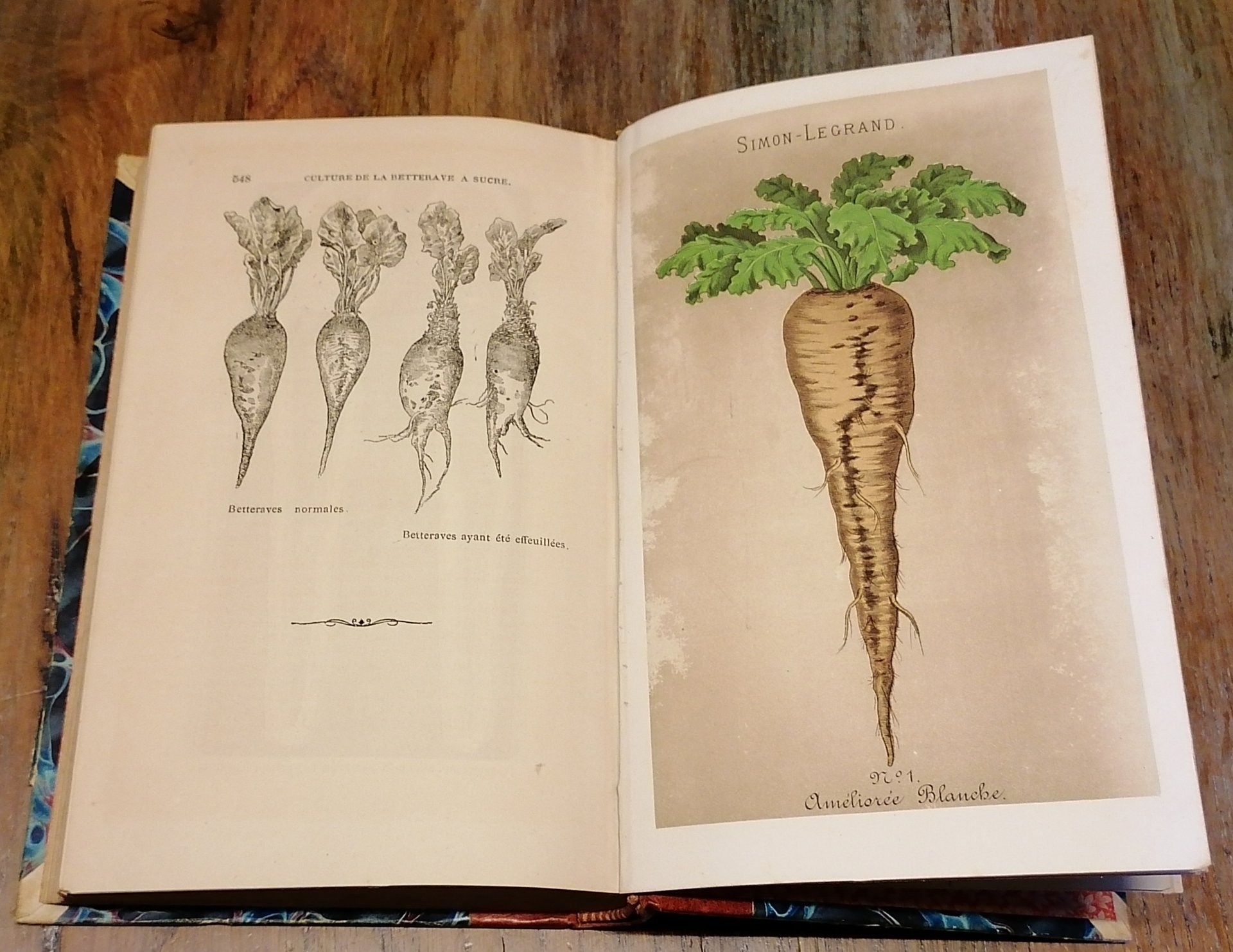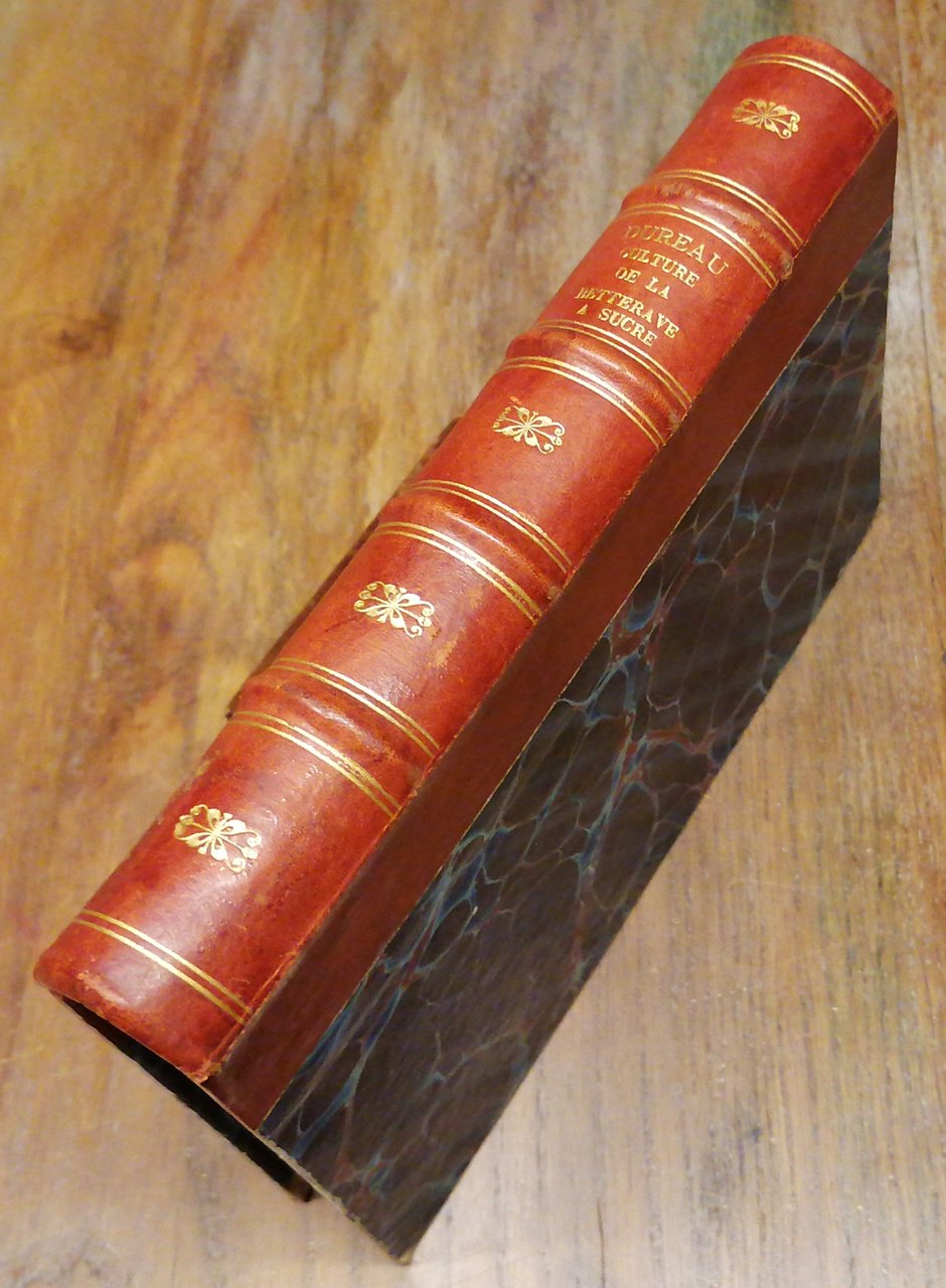 (Agricoltura - Agraria - Zucchero - Produzione - Barbabietola) In 8°, legatura coeva in mezza pelle color ocra, dorso a 4 nervi con titolo, filetti e fregi impressi in oro, carta marmorizzata ai piatti, pp. IV,554,(4), con numerose figure nel testo anche a doppia pagina e 5 tavole in cromolitografia fuori testo. Due timbri non deturpanti di biblioteca estinta, al recto della prima carta bianca ed al margine superiore del frontespizio. Trattato sulle varietà e la coltivazione della barbabietola da zucchero. Volume solido e ben conservato.