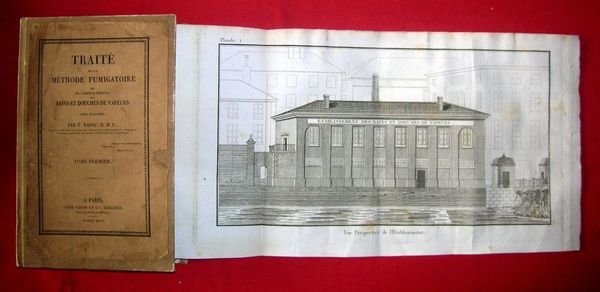 Due volumi in 8°, pp. (10), 416; (4), 430. Con 3 tavole fuori testo ripiegate (facciata e planimetrie dell'Etablissement des bains et douches de vapeurs). Leg.cartonata moderna con copertine originali applicate ai piatti. Fioriture dovute alla qualità della carta e un rinforzo al margine interno del primo occhietto ma buon esemplare, parzialmente a fogli chiusi. Esemplare con dedica autografa dell'autore.