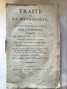 TRAITE’ DE LA MYTHOLOGIE, OU EXPLICATION DE LA FABLE PAR L’HISTOIRE, AUGMENTE DES HIEROGLYPHES DES EGYPTIENS, VERITABLE SOURCE DE LA FABLE, ORNE’ DE 216 GRAVURES EN TAILLE DOUCE