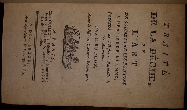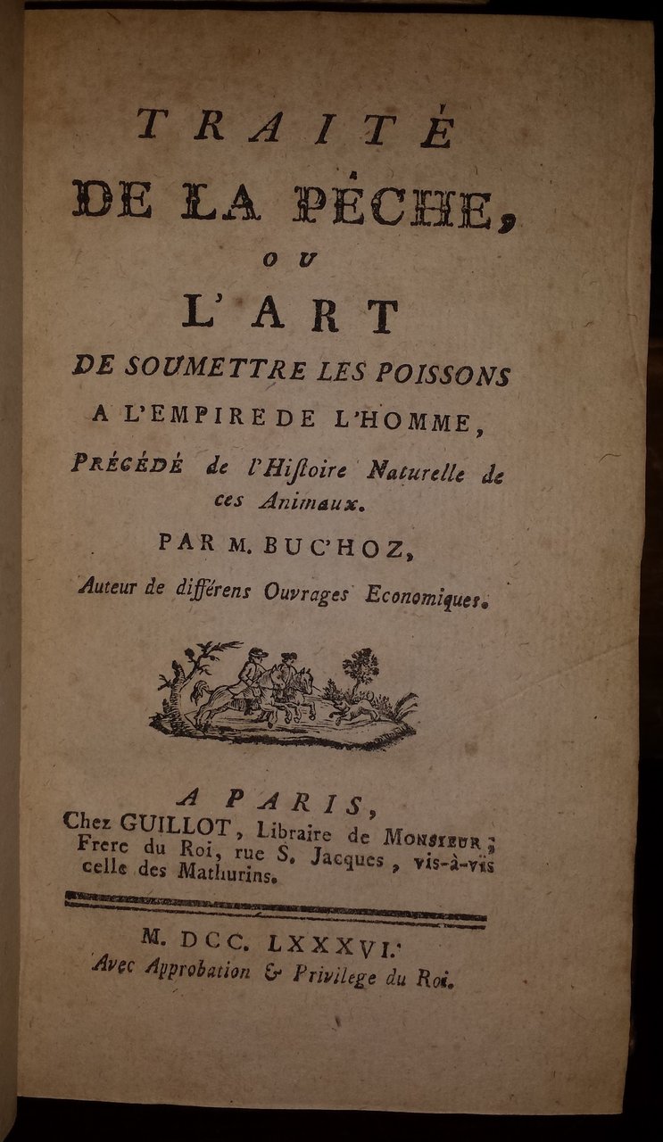 Traite de la Peche ou l'art de soumettre les poissons a l'empire de l'homme, precede de l'Histoire Naturelle de ces Animaux. Par M. Buchoz, auter differens Ouvrages Economiques.