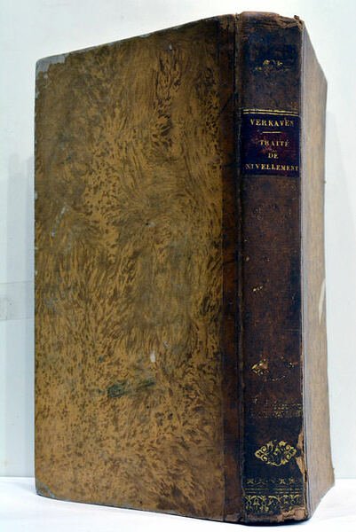 IV. 369 pages. IX planches dépliantes hors-texte. (21x13 Cm) Demi-veau. Dos lisse orné. Une charnière ouverte. Coins et coiffes émoussés. Plats et dos un peu frottés. Edition rare de ce traité publié après la mort de l'auteur par un ancien ingénieur qui l'augmenta des travaux d'Andréossy sur le terazi, niveau des fontainiers de Constantinople. Il contient entre autres une large description des instruments nécessaires au nivellement et une table des hauteurs des principales montagnes du globe. Il est illustré de 9 gravures représentant des instruments. Rousseurs éparses. Mouillure claire angulaire sur une centaine de pages.