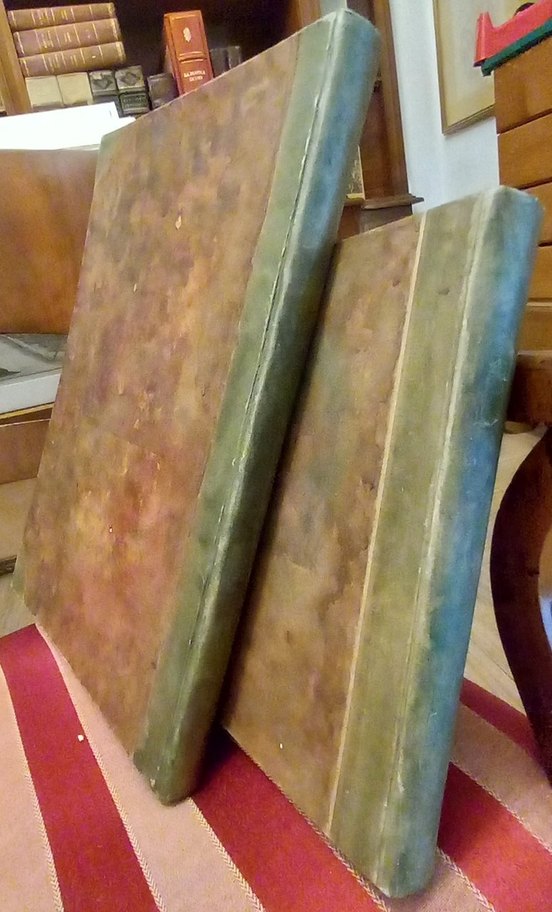 2 voll. In-4 (27 cm) XVI 483 (1). In-folio (41 cm) (2) 74 c. (di tav. di cui ripiegate). Legatura in cartone, carta marmorizzata ai piatti. Alcune fioriture diffuse, gora marginale alle prime tavole dell'Atlas. Seconda edizione. Completa di tutte le tavole. Buon esemplare. 2 voll In-4 (27 cm) XVI 483 (1). In-folio (41 cm) (2) 74 c. (of plates, including folded plates). Cardboard binding, marbled paper on the covers. Some widespread foxing, marginal stain on the first plates of the Atlas. Second edition. Complete with all the plates. Good copy. Lingua francese