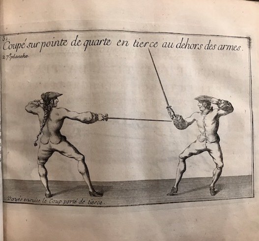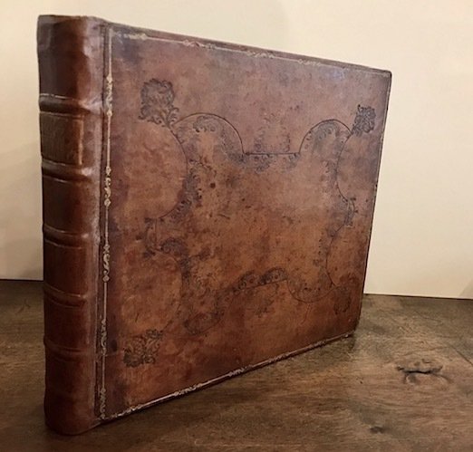 8vo oblungo (cm. 22x23,5), 2 cc.nn., 156 pp., 4 cc.nn. con 116 tavv. incise su rame f.t. Antiporta, con ritratto dell’Autore, sottoscritta da J. De Favanne. Frontespizio in rosso e nero. Fregi e capilettera xilografici n.t. Legatura coeva in piena pelle con nervi, fili e titolo oro su tassello al ds. Piatti con ricche impressioni a secco e cornici dorate. Tagli colorati. Carte di guardia marmorizzate. Dorso rinnovato. Lievi sporadiche ingialliture, peraltro esemplare in ottimo stato di conservazione. ‘Ouvrage rare et très interessant. Les planches 1-81 servent a illustrer les règles d’escrime et l’usage de toutes sortes d’armes tant d’offense que de défense. Les autres planches présentent l’exercise de l’infanterie, la manière de faire saluts militaires, etc.’ (cfr. Olschki, Choix I, 394).