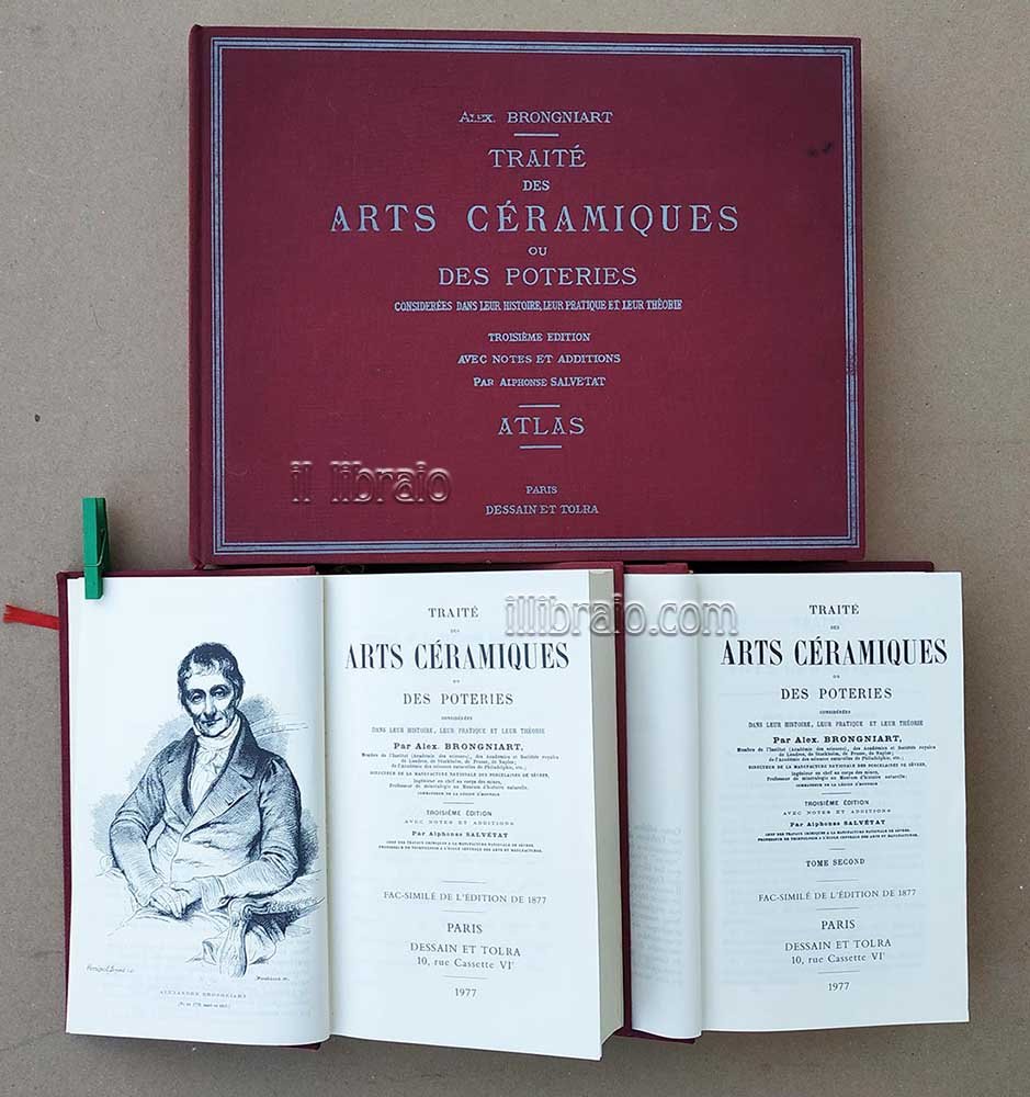 3 voll.; in 8°; pp. (4), XXXII, 760; (6), 826; (10), 88 + LXXI tavv. (ill. in bn.); leg. Opera composta da 2 voll. in 8° e un atlante in formato oblungo (25 x32 cm. ca.) con 9 tavv. (alcune ripiegate più volte) e altre 71 tavv. ill. con le loro spiegazioni. Fac-simile dell'edizione del 1877 (edizione del centenario) con le note e le aggiunte di Alphonse Salvetat. Esaustiva opera sull'argomento che tratta della storia, la pratica, la teoria, le origini, le analisi chimiche, le tecniche, lo smalto, la composizione e le fabbriche
