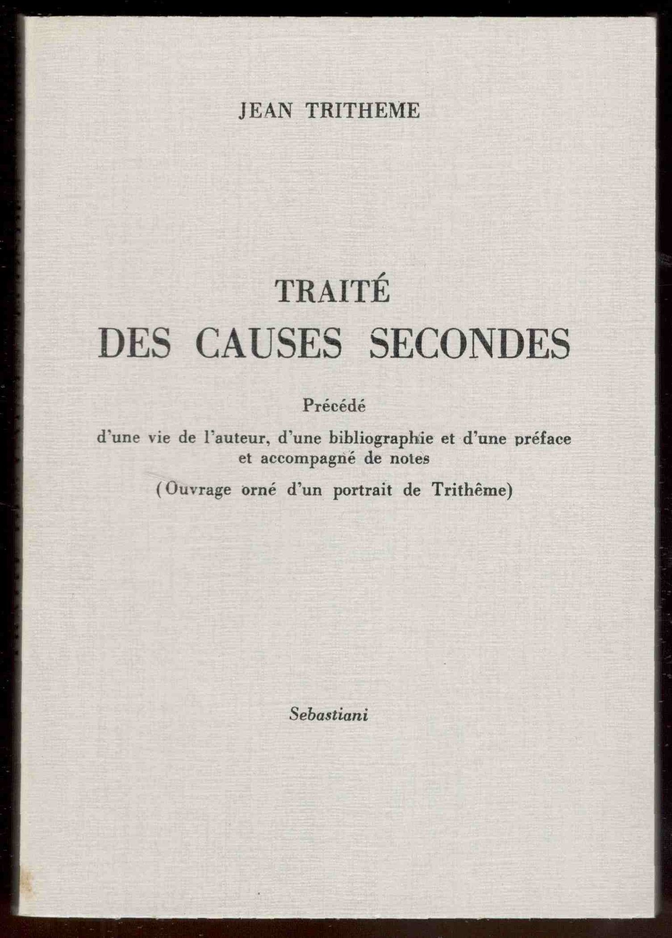 Traité des causes secondes. Précédé d'une vie de l'auteur, d'une bibliographie et d'une préface et accompagné de notes. (Ouvrage orné d'un portrait de Trithème)
