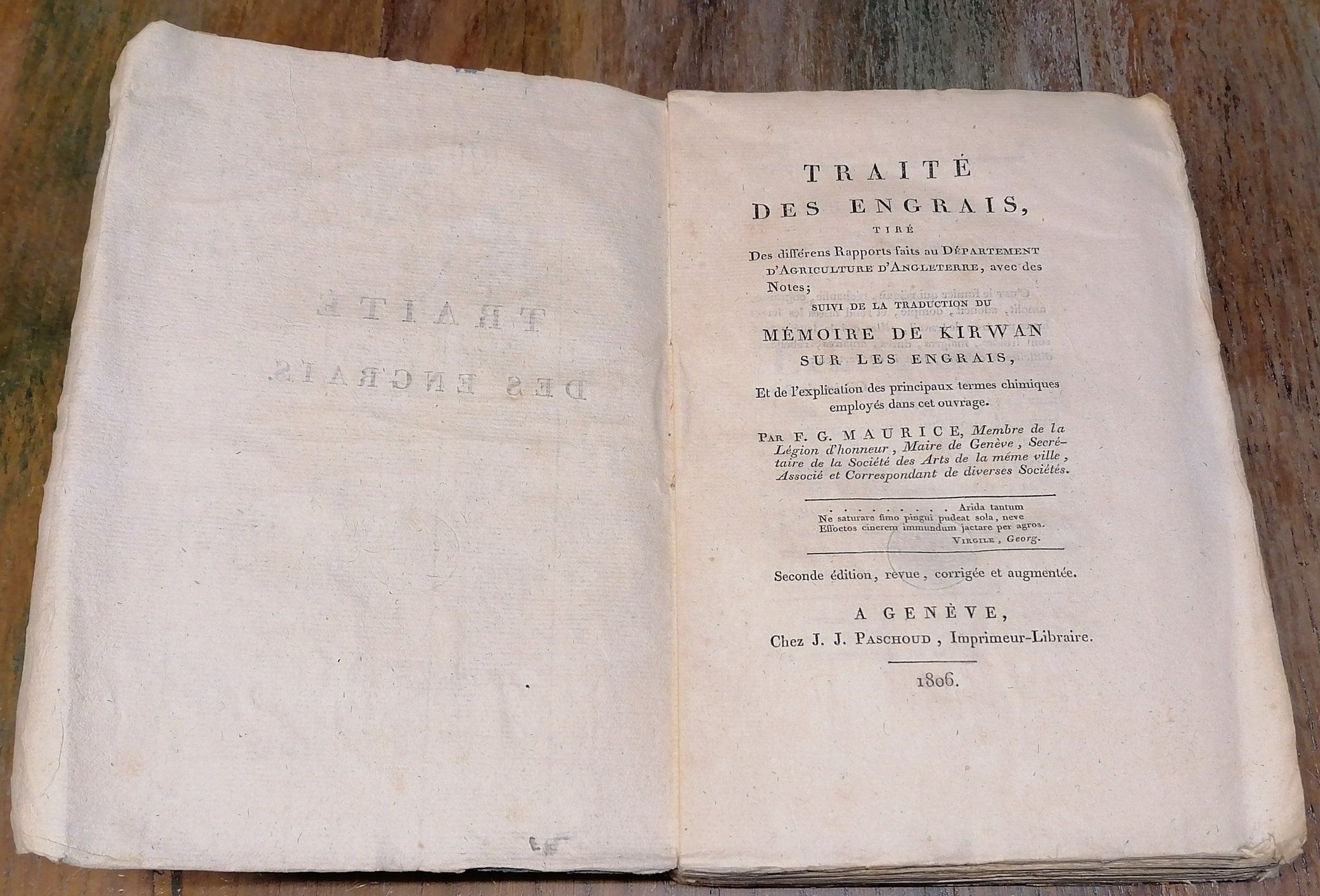 Traitè des engrais, tirè des diffèrens rapports faits au Dèpartement d'Agriculture d'Angleterre, avec des notes; suive la traduction du Mèmoire de Kirwan sur les engrais, et de l'explication des principaux termes chimiques employès dans cet ouvrage. Par F. G. Maurice. Seconde èdition, revue, corrigèe et augmentèe.
