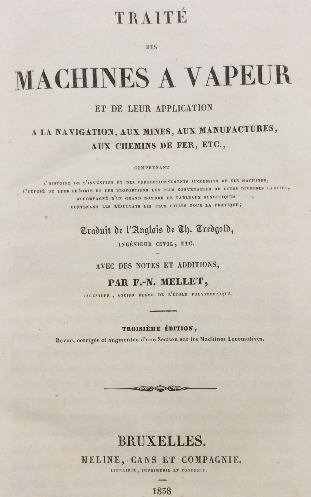 TRAITE' DES MACHINES A VAPEUR ET DE LEUR APPLICATION. - A la navigation, aux mines, aux manufactures, aux chemins def fer, etc. Traduit de l'Anglais, avec des notes et additions par F.-N. Mellet.