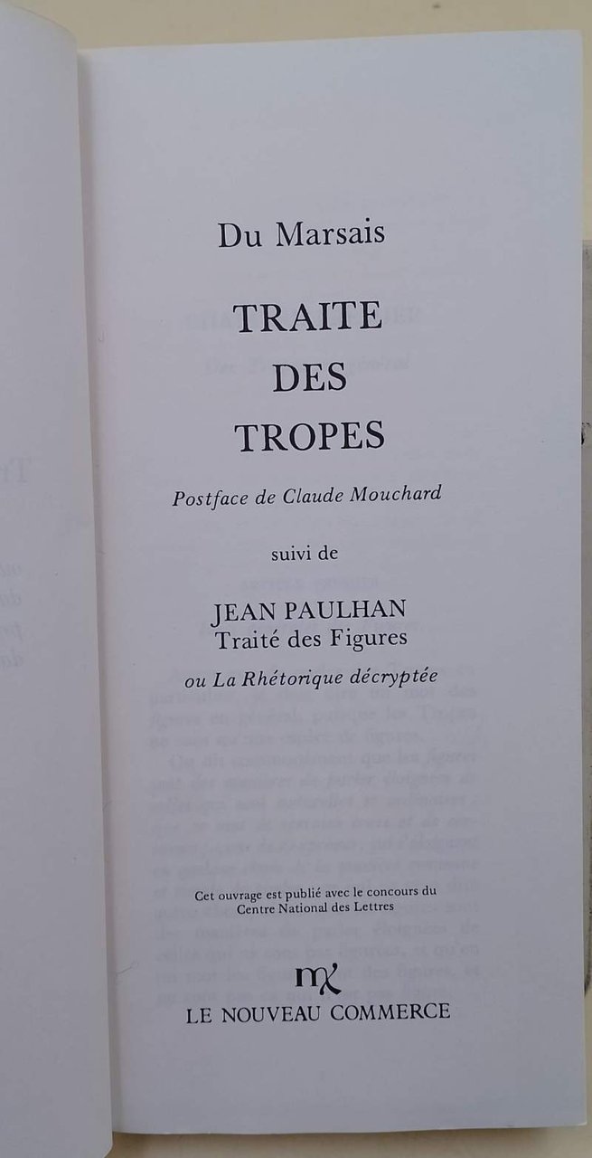 In 8' stretto, br. ed. con risv., pp. 322, postface de Claude Mouchard suivi Jean Paulhan -Traite' de Figures ou La rethorique decryptee; piega al dorso, leggere sottolieature a matita alle ultime 2 pagine, altrimenti in buono stato. ***Due to bureaucratic reasons, books dated over 70 years old cannot be immediately exported, please contact us before placing the order.***