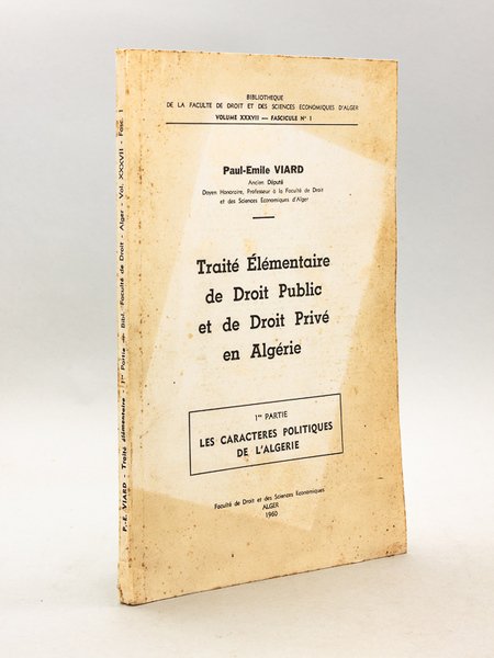 Traité Elémentaire de Droit Public et de Droit Privé en Algérie. 1ère Partie : Les Caractères politique de l'Algérie [ Edition originale - Livre dédicacé par l'auteur ]