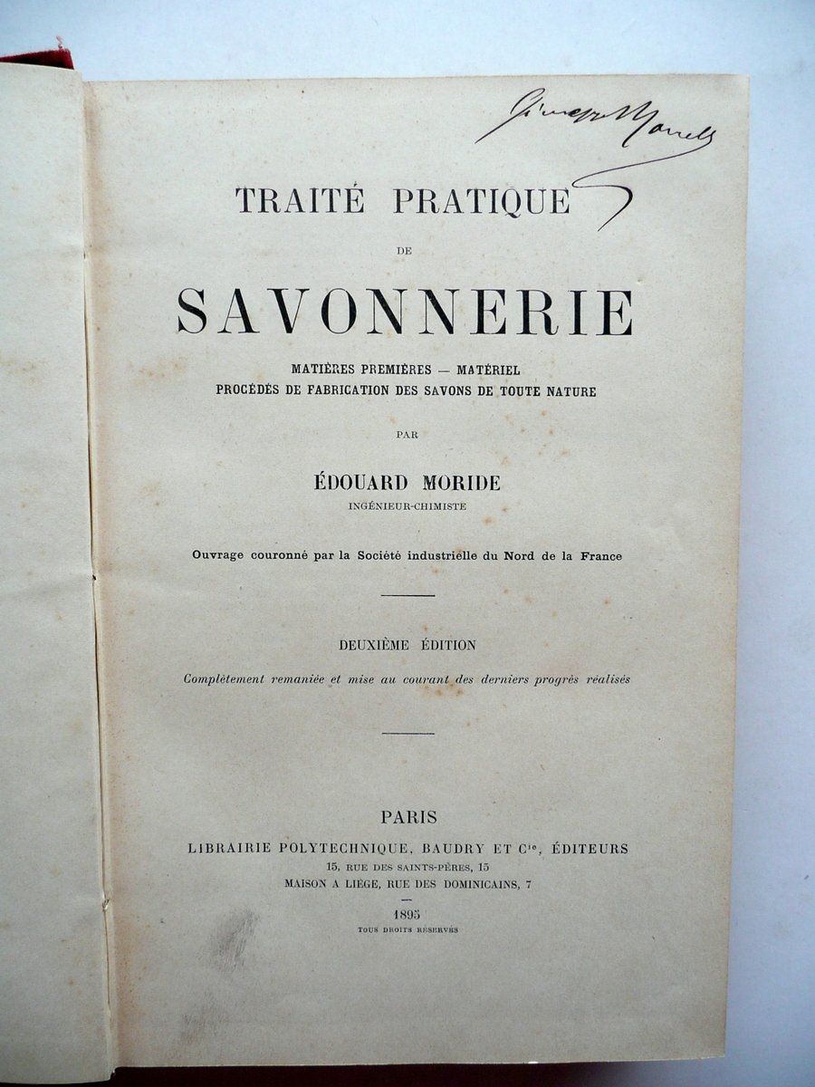 TraitÈ Pratique de Savonnerie Edouard Moride Baudry Paris 1895 Profumeria Saponi