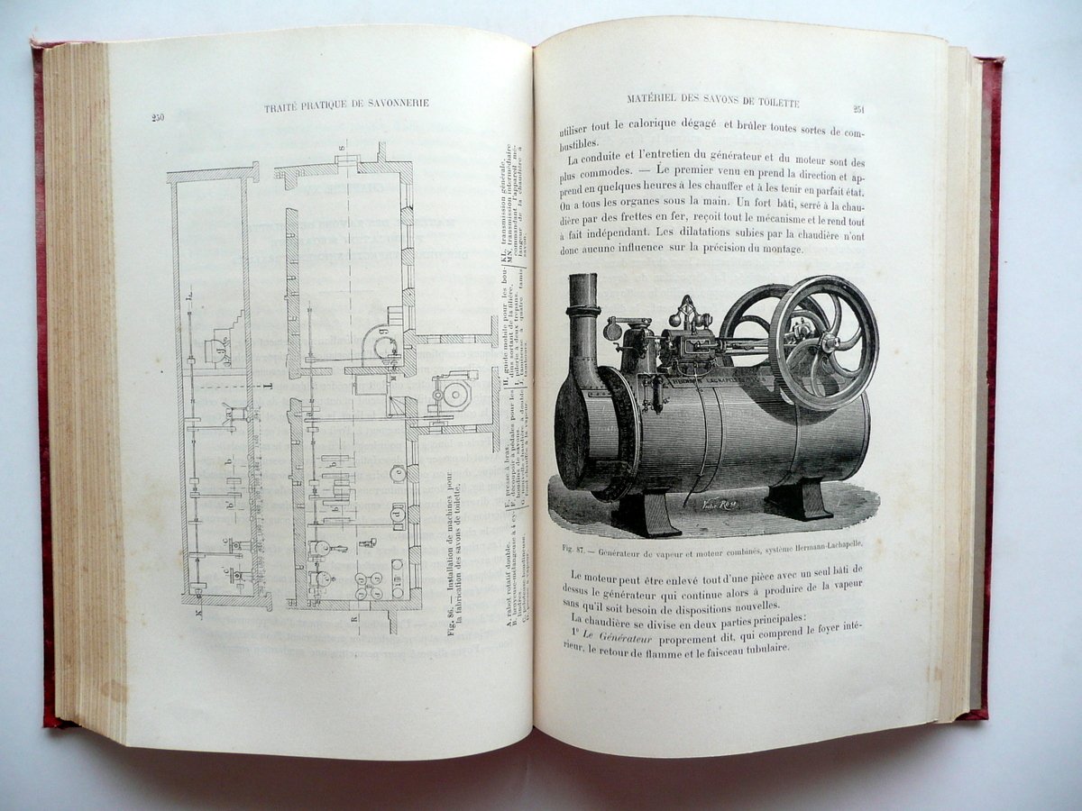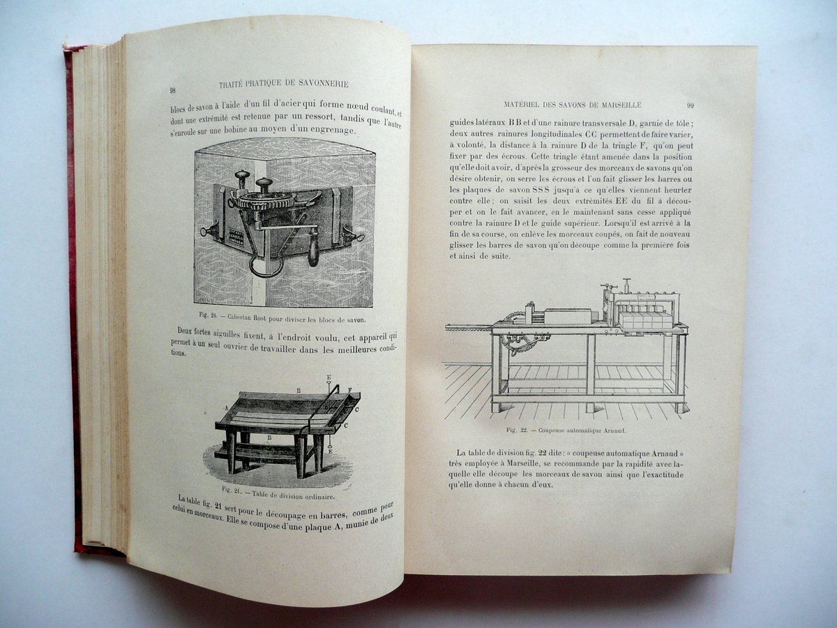 Edouard Moride, Traité Pratique de Savonnerie Matières premières - materiel - procédés de fabrication des savons de toute nature Deuxième édition completement remaniée et mise au courant des dernieres progrès réalisés Librairie Polytechnique Baudry et C., Paris 1895, cm 25x16, pp. I-XXIV; pp. 1-448 con 115 fig. in b/n nel t. e a piena pagina; tutta tela ed. con titolo impresso in oro al dorso e al piatto ant.; contropiatto ant. con applicato ex - libris del precedente proprietario. Testo in francese. Condizioni di conservazione Esemplare in buone condizioni con tracce d'uso; coperta con alcune leggere abrasioni; margini e angoli dei piatti con pochi minimi strappetti; dorso con qualche macchietta di colore nero; parte sup. di entrambi i piatti (in particolare gli angoli) con alcuni difetti e tracce di vecchia umidità, le quali interessano in misura lieve e marginale l'angolo sup. di qualcuna delle prime e delle ultime pagine, ma mai il testo. Interni buoni con qualche piccola lieve brunitura; taglio ant. con una piccola leggera gora che non interessa il testo. Testo in francese. Con 115 belle illustrazioni incise in bianco e nero nel testo e a piena pagina. SETT101.L9560 N