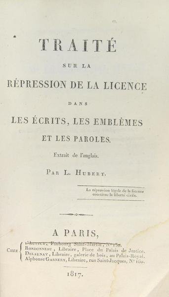 Traité sur la répression de la licence dans les écrits, les emblèmes et les paroles.