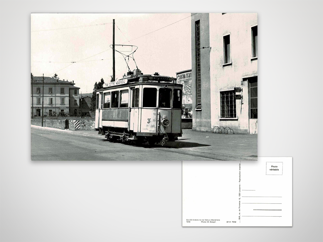 Cartolina Tram dell'epoca in via Vela a Mendrisio, non viaggiata Dimensioni: 10,5 x 15 cm