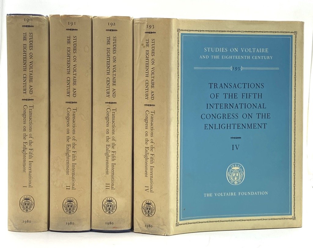 TRANSACTIONS OF THE FIFTH INTERNATIONAL CONGRESSO ON THE ENLIGHTENMENT. Pisa August / September 1979. Actes du Cinquième congrès international des Lumières. Pisa août / septembre 1979. Atti del Quinto congresso internazionale sull’Illuminismo. Pisa agosto / settembre 1979. Volume I, II, III, IV (opera completa).