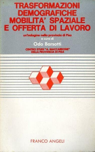 229 p. ; 22 x 14 cm. Scritti di O. Barsotti, L. Giannini, S. Venturi. Le specificità territoriali dello sviluppo demografico e economico sociale impongono sempre più di realizzare studi e ricerche a livello spaziale molto disaggregato, in modo da cogliere le peculiarità dei fattori che determinano le trasformazioni, talvolta profonde, degli assetti territoriali. D'altro canto, l'accurata conoscenza della realtà su cui si intende operare è la condizione fondamentale per la comprensione adeguata delle linee evolutive di un determinato sistema economico - territoriale e per l'arricchimento del contesto di riferimento da cui trarre gli orientamenti di fondo per le scelte programmatiche. La ricerca sulla provincia di Pisa, della quale nel presente volume sono riportati i risultati più significativi, si pone in questa prospettiva, fondandosi sull'osservazione di quei fenomeni che costituiscono l'espressione più immediata dei mutamenti di maggior rilievo dell'assetto economico sociale. L'analisi ha un taglio eminentemente demografico; ma, evidenziando l'evoluzione e le modificazioni che la base demografica ha subito nel periodo più recente, i processi di mobilità della popolazione e della forza lavoro, le loro prospettive di crescita, lascia anche intravedere le trasformazioni che hanno coinvolto i modelli di organizzazione spaziale della funzione produttiva e il sistema infrastrutturale. Fa, inoltre, scorgere i problemi che in un prossimo futuro potranno porsi, sia dal lato dell'occupazione, sia dal lato della riconsiderazione del sistema dei servizi sociali a fronte dell'ulteriore invecchiamento della popolazione. Brossura editoriale, coperta in cartoncino flessibile illustrata a colori, titolo impresso al piatto e al dorso. Codice libreria 8011.