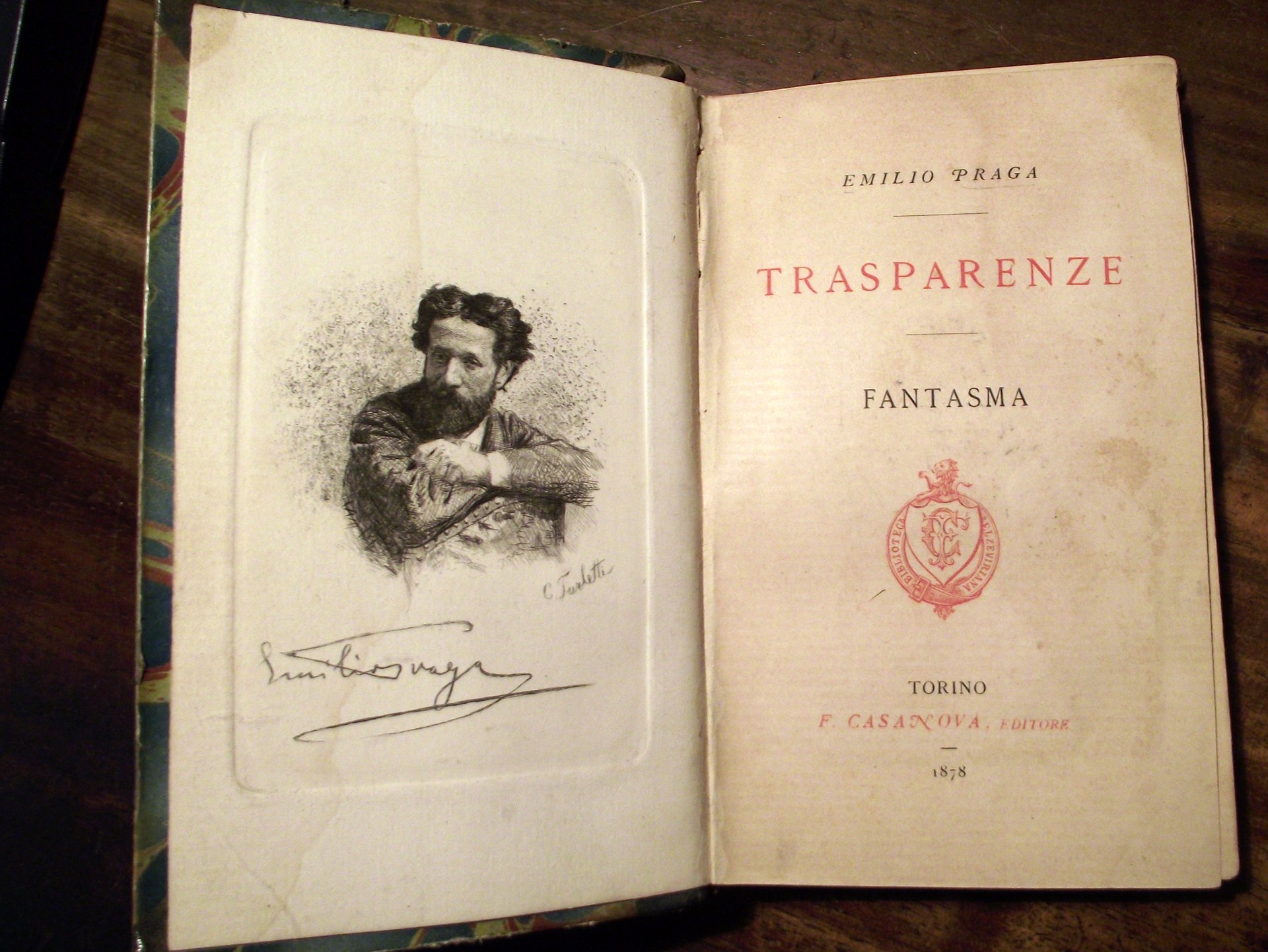 >in-16, pp. XLIII, 166, (16) di catalogo ''Edizioni proprie'' dell'editore Francesco Casanova aggiornato al mese di ottobre1877. Legatura coeva in m. pelle verde, piatti marmorizzati, titolo e filetti in oro al dorso. Un ritratto del Praga all'antiporta inciso da Celestino Turletti. Edizione originale, con firma autografa apposta dall'A. sul ritratto. Bell'esemplare. Parenti, p. 414.