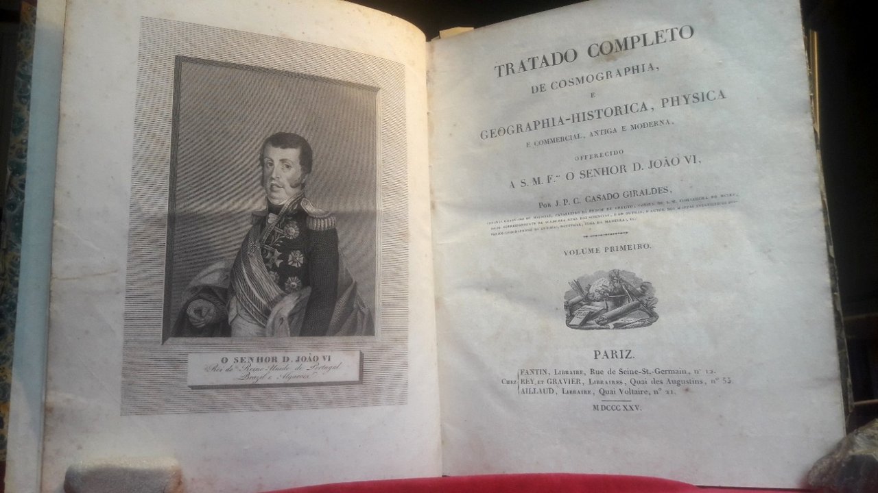 Tre volumi in 4 grande, legati in mezza pelle con unghie, titoli al dorso ornato con decorazioni in oro ai piccoli ferri (dorso del terzo volume, restaurato senza decorazioni), sguardie, occhielli, al primo tomo tavola in rame col ritratto del Re Joao VI, frontespizi, XXIV, 448, VII, 474, VII, 423 pp. Amplissimo trattato in portoghese. Molte ed interessanti le notizie e le annotazioni. Lievi e sporadiche fioriture della carta. In pi che buono stato. Raro.