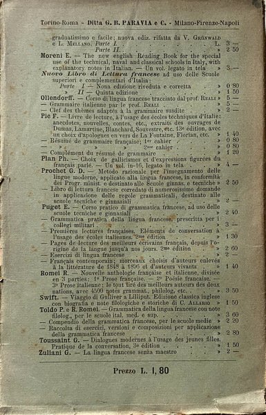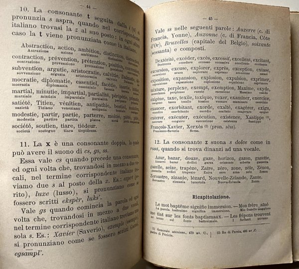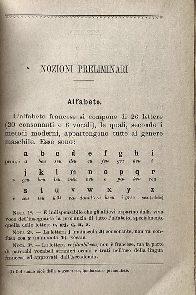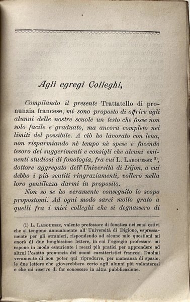 Soggetti: Esercizi, Pronuncia francese, Ortografia, Vecchi Manuali, Didattica, Fraseologia, Grammatica, Libri scolastici antichi, Collezionismo, Libri Vintage Fuori catalogo, Libri rari, Rarità, Alfabeto, Vocali, Consonanti, Accenti, Dizionari bilingue, Italiano-francese, Verbi, Nomi, Sinonimi, Modi di dire, Espressioni, Uso comune, Scuola media, Medie, Pubblica Istruzione, Lezioni, Corsi, Esercizi, Eserciziari, Metodo, Insegnamento, Apprendimento, Lingue straniere, Anni Dieci, Novecento, Scuola italiana, Manualetti, Labouesse, Linguistica, Fonologia, Fonetica, Suoni, Parole, Sillabe, Regole, Doppie, Prosa, Antologie, Racconti, Poesia, Scene, Dialoghi, Discorso, Erre, Gutturali, Nasali, Exercises, French pronunciation, Spelling, Old Manuals, Didactics, Phraseology, Grammar, Old school books, Collecting, Out of print books, Rare books, Rarities, Alphabet, Vowels, Consonants, Accents, Bilingual dictionaries, Italian-French, Verbs, Names, Synonyms, Idioms, Expressions, Common use, Middle school, Education, Lessons, Courses, Exercises, Method, Teaching, Learning, Foreign Languages, Ten years, Twentieth century, Italian school, Manuals, Linguistics, Phonologies, Phonetics, Sounds, Words, Syllables, Rules, Doubles, Prose, Anthologies, Tales, Poetry, Scenes, Dialogues, Speech, Erre, Guttural, Nasal, Exercices, Prononciation française, Orthographe, Vieux manuels, Didactique, Phraséologie, Grammaire, Livres de la vieille école, Collection, Livres épuisés, Livres rares, Raretés, Aphabet, Voyelles, Consonnes, Accents, Dctionnaires bilingues, Italien-français, Verbes, Noms, Synonymes, Idiomes, Expressions, Usage commun, Collège, Education, Leçons, Cours, Exercices, Méthode, Enseignement, Apprentissage, Langues étrangères, Dix ans, XXe siècle, Ecole italienne, Manuels, Linguistique, Phonologies, Phonétique, Sons, Mots, Syllabes, Règles, Doubles, Prose, Anthologies, Contes, Poésie, Scènes, Dialogues, Discours, Moliere, Rousseau, Hugo, Fenelon, Diderot, Voltaire, La Fontaine, Montesquieu, Pedagogia