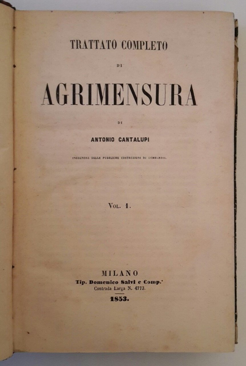 TRATTATO COMPLETO DI AGRIMENSURA DI ANTONIO CANTALUPI MILANO D. SALVI 1853