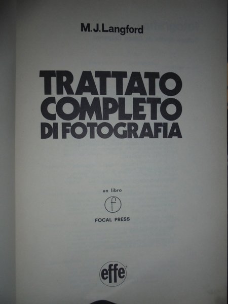 M.J. Langford. Roma, Effe Editoriale, 1973. Trattato completo di fotografia. Prima edizione. In-8°, cartonato edit. ill. a col. con la sovracopertina. viii, 491 pp. con numerose illustrazioni in bianco e nero e a colori nel testo. In ottimo stato di conservazione. Neg. Fot. mob. N.