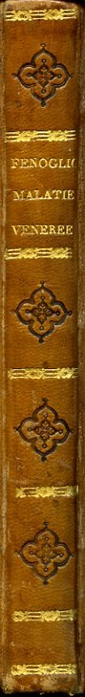 In-8° (209x129mm), pp. XI, 278, (2), legatura coeva m. pelle marrone con titolo in oro e decori in oro e a secco al dorso. Piatti marmoreggiati. Tagli a spruzzo. Freschissimo esemplare. Prima edizione di questo trattato veneorologico del Fenoglio, 'già Chirurgo d'ambulanza ne' Regii Eserciti Chirurgo della Real Casa, dell'Ospizio celtico e Sozio [sic] di più Accademie' (dal frontespizio). Il Fenoglio, nativo di Rivoli, compose anche un poema didascalico su 'Le Febbri'. Non in Wellcome.