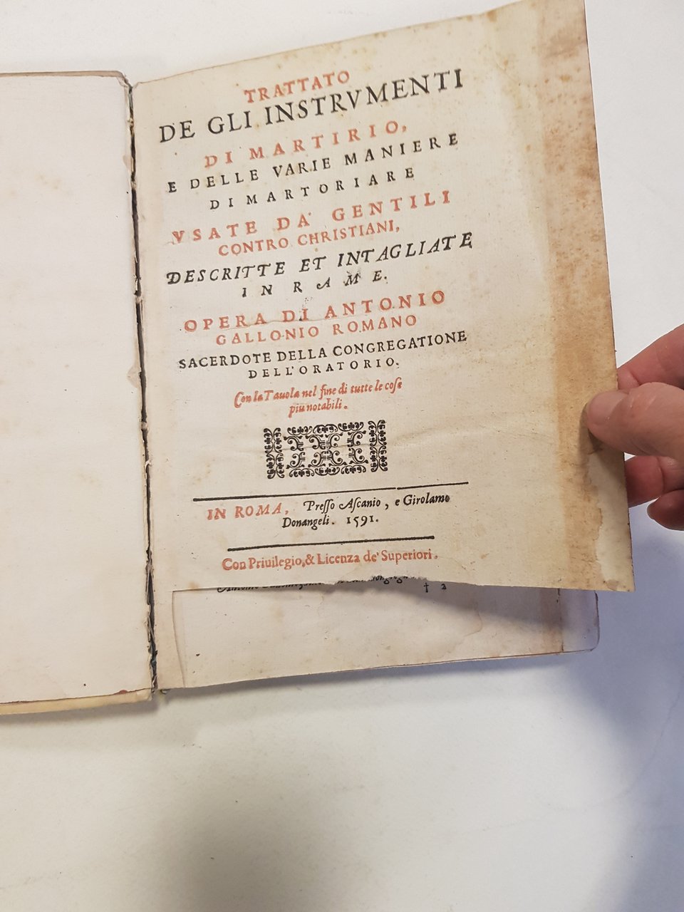 Trattato de gli instrumenti di martirio, e delle varie maniere di martoriare usate da' gentili contro christiani, descritte et intagliate in rame.