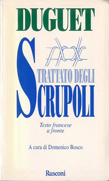 310 p. ; 21 x 12 cm. Testi a fronte. Introduzione, traduzione e apparati di Domenico Bosco. Testo francese a fronte. Titolo originale dell'opera: «Traité des scrupules, de leurs causes, de leurs espèces, de leurs suites dangereuses, de leurs remèdes généraux et particuliers». Legatura editoriale, coperta in cartoncino semirigido colorato con titolo impresso al piatto e al dorso. Codice libreria 3872.