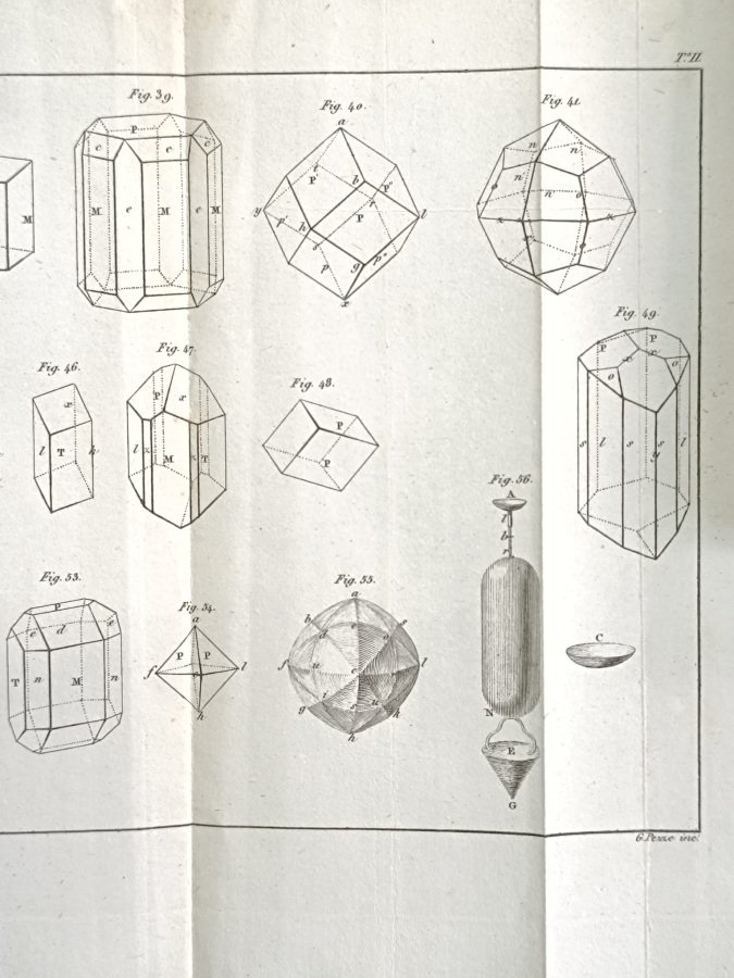 <span style="font-style: normal;">In-8° (cm. 21,4), brossura con rinforzo al dorso (lievi tracce d'uso); pp. XXXVI 227 [1] in barbe (alcune fioriture alle sole prime carte); con 3 grandi tavole incise in rame, più volte ripiegate fuori testo in fine, raffiguranti le pietre preziose e le macchine per lavorarle. Prima edizione italiana di quest'opera fondamentale pubblicata in Francia nel 1817 con il titolo </span><i>Traité des caracteres physiques des pierres precieuses</i>. Pietra miliare nell'ambito degli studi gemmologici, ha in fine una lunga tabella che descrive le gemme in base alla lucentezza, durezza, rifrazione, elettricità e magnetismo. Buon esemplare. (NG4)