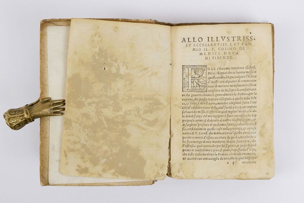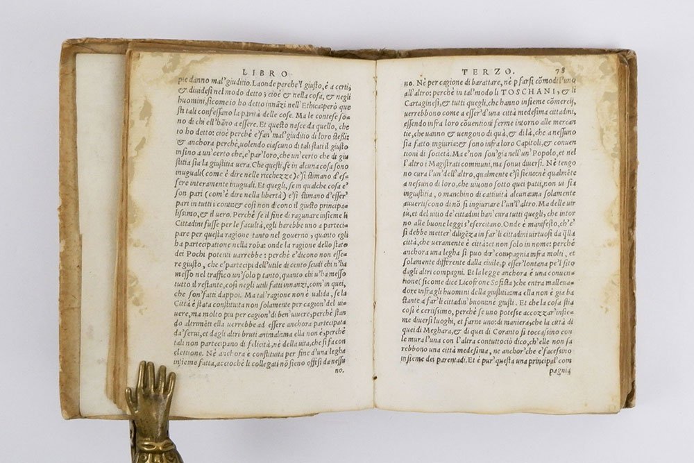 LIBROSeconda edizione.Esemplare più che buono buono (distacco del primo fascicolo, presente; frontespizio rinforzato con carta giappone a sanare tre strappetti; alcune carte leggermente scurite; aloni marginali passim; il dorso risulta distaccato dai fascicoli a causa della rottura della cerniera interna superiore).Non comune seconda edizione con la traduzione italiana del Segni, dopo quella del Torrentino del 1549. Cfr Gamba, 91; Argelati I 99; Graesse I 218.