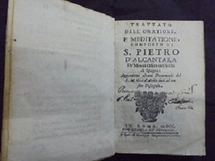 TRATTATO DELL`ORATIONE, E MEDITATIONE, COMPOSTO DA S. PIETRO D`ALCANTARA DE` MINORI OSSERVANTI SCALZI DI SPAGNA; aggiontovi alcuni documenti del P.M. Gio. d`Avila dati ad un suo discepolo.