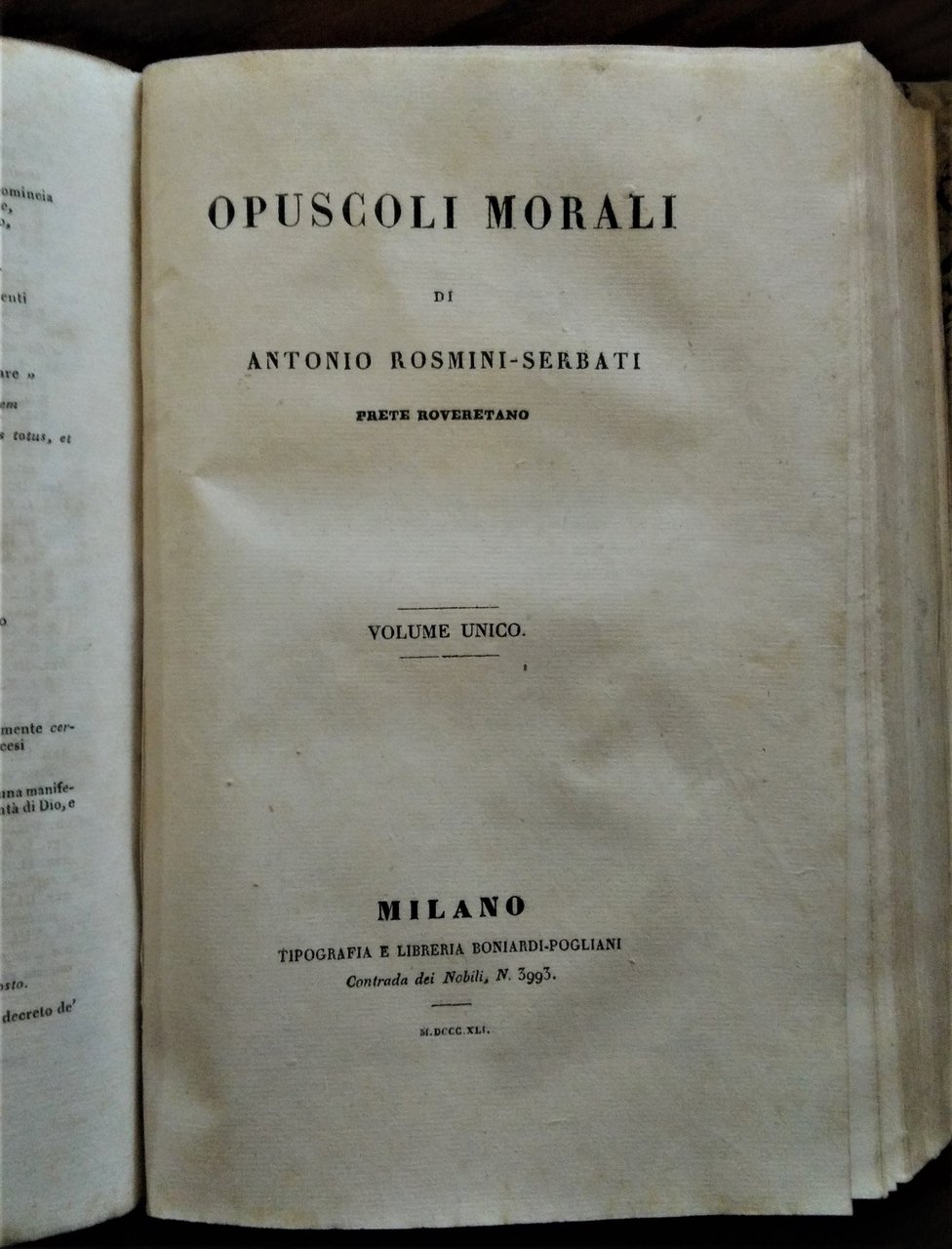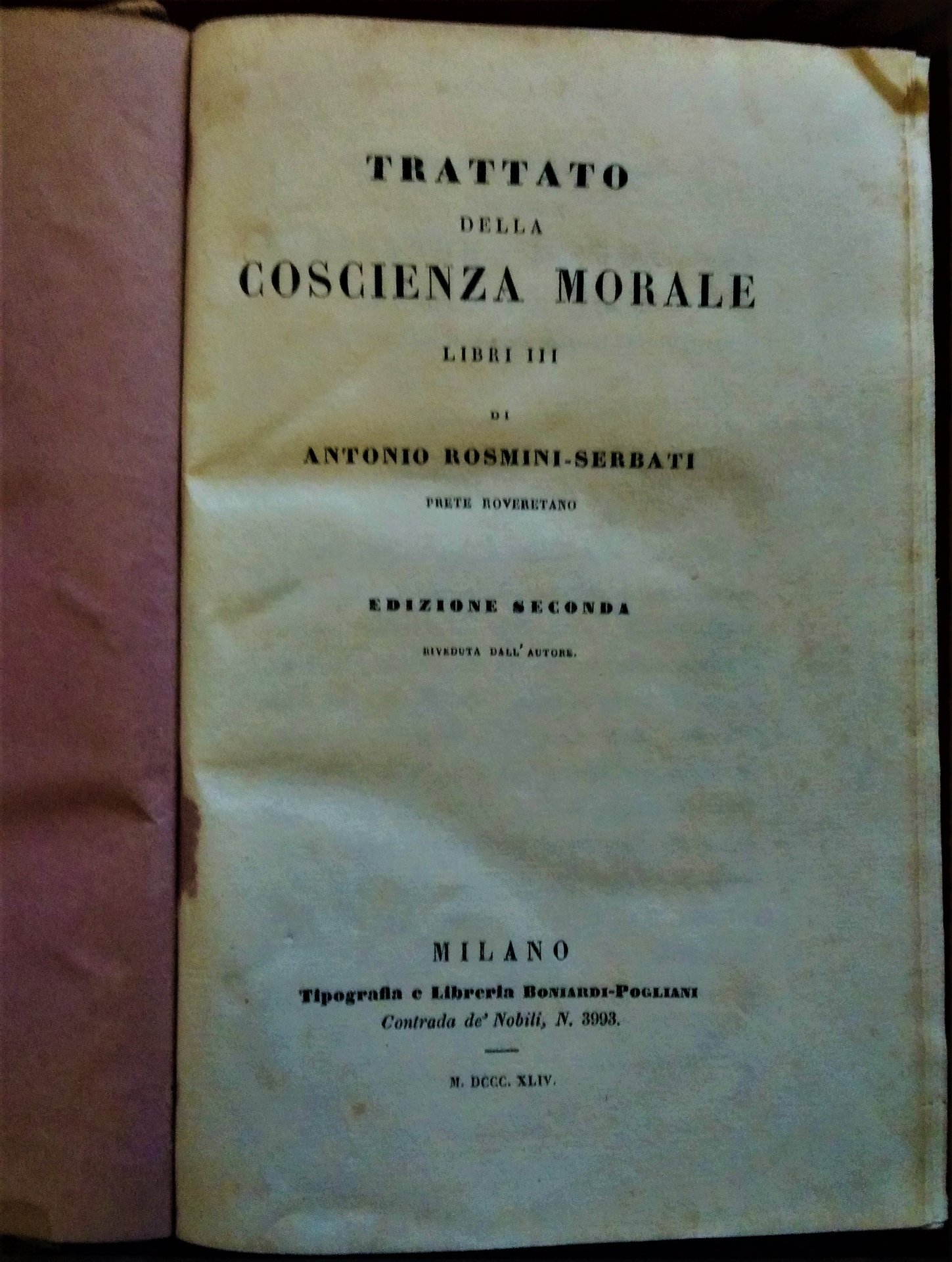 Trattato della Coscienza Morale libri III. Edizione seconda riveduta dall'autore. - RILEGATO CON - Opuscoli Morali. Volume unico.