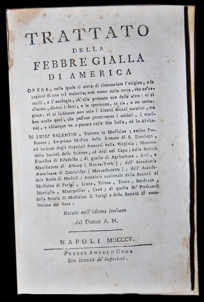 Trattato della febbre gialla di America opera, nella quale si cerca di rintracciare lorigine, e le cagioni di una tal malattia, non meno sulla terra, che ne vascelli e lanalogia chella presenta con delle altre: vie si discute, dietro i fatti,