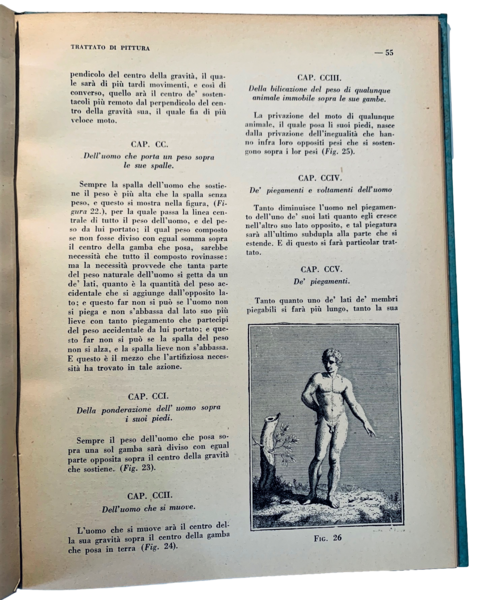 In 4°; 98, (4) pp. Legatura in cartoncino editoriale azzurro con autore, titolo, casa editrice e luogo di stampa in oro al dorso. Prima edizione della Casa Editrice Vittoria del celebre trattato della pittura di Leonardo da Vinci. Esemplare illustrato. Ottimo stato di conservazione.
