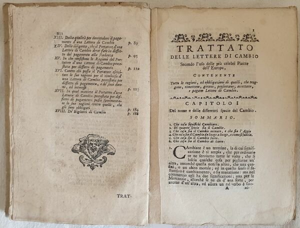 TRATTATO DELLE LETTERE DI CAMBIO SECONDO L'USO DELLE PIU CELEBRI PIAZZE D'EUROPA