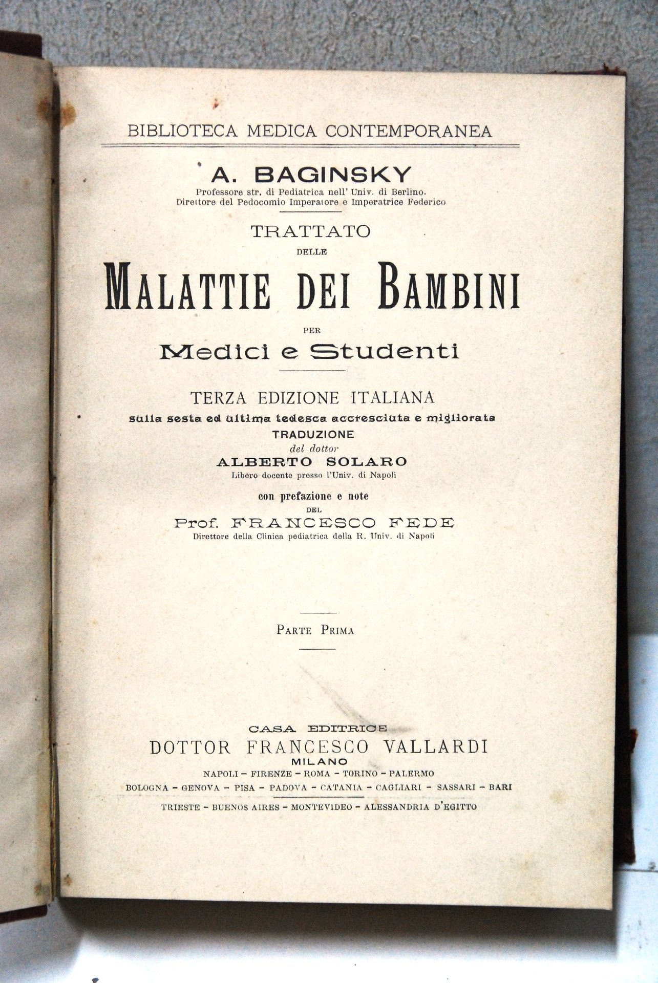baginsky trattato delle malattie dei bambini per medici e studenti terza ediz. ital. sulla sesta ... 967 pagg.. vallardi .