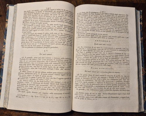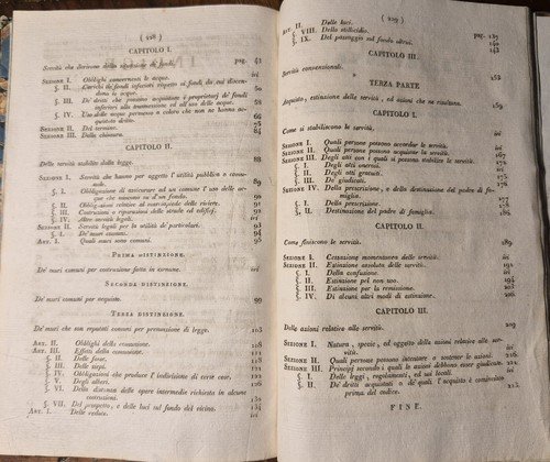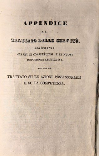 229 pagine + 21 pagine di appendice che comprende anche il TRATTATO SU LE AZIONI POSSESSORIALI E SU LA COMPETENZA. Copertina coeva in mezza pelle con titoli e fregi dorati al dorso, piatti marmorizzati e tagli colorati. Dimensioni: 15 x 22,5 cm. Stato di conservazione: molto buono (sporadiche fioriture, piccole imperfezioni al dorso)