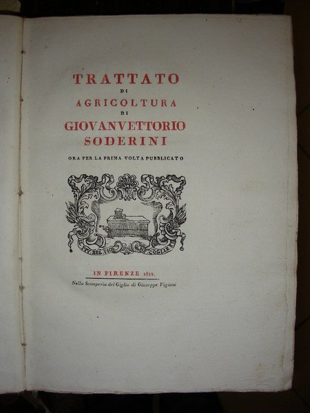 TRATTATO DI AGRICOLTURA di. Ora per la prima volta pubblicato.