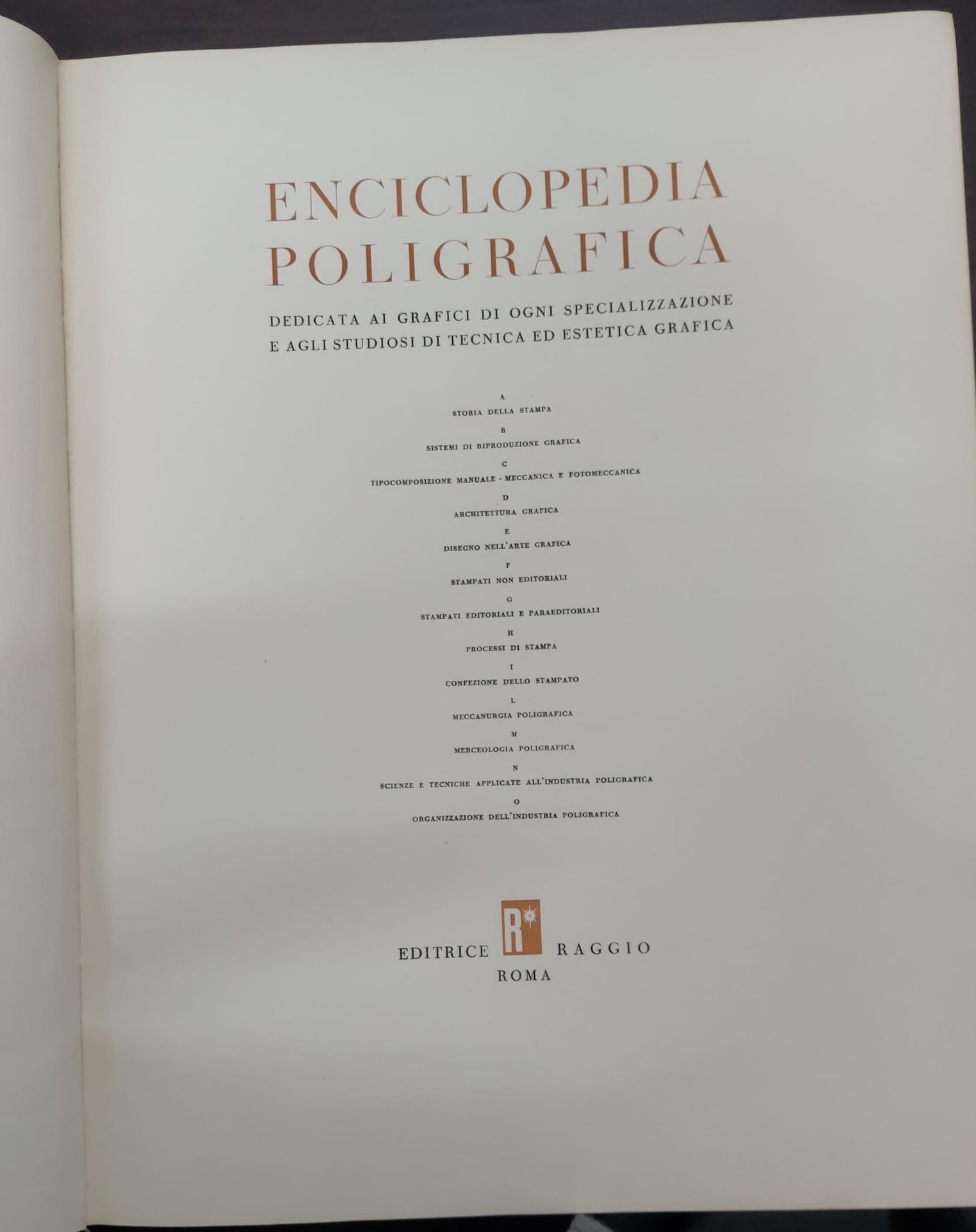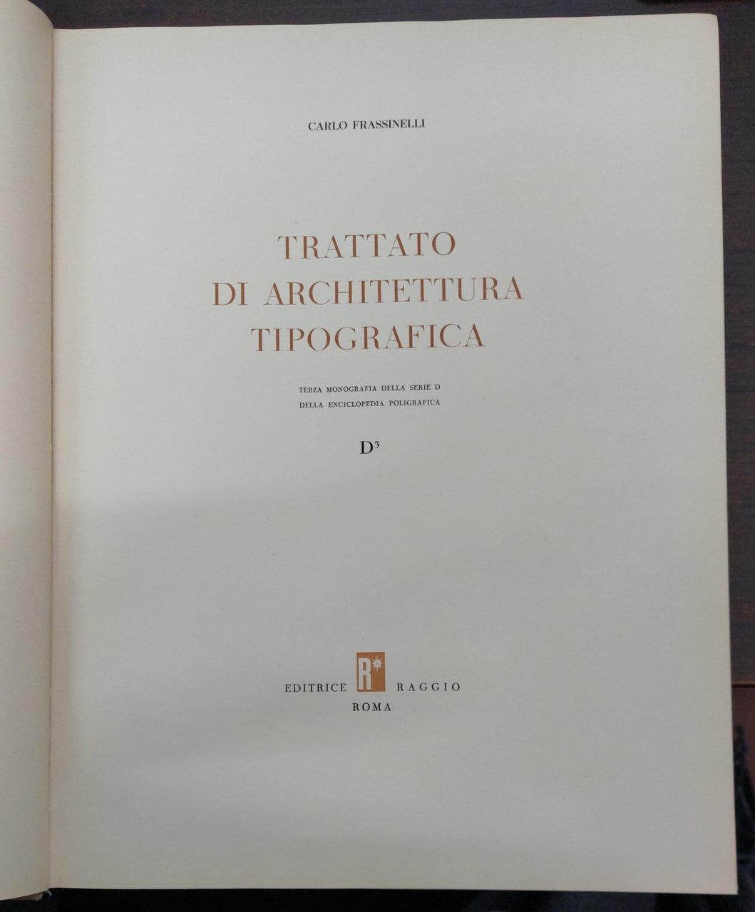 Trattato di architettura tipografica. Carlo Frassinelli - Enciclopedia poligrafica. Terza monografia della serie D. Editrice Raggio, seconda edizione 1955