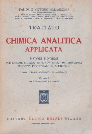 - S G. VITTORIO VILLAVECCHIA TRATTATO DI CHIMICA ANALITICA, APPLICATA - METODI E NORME PER L'ESAME CHIMICO ED IL CONTROLLO, DEI PRINCIPALI PRODOTTI INDUSTRIALI ALIMENTARI EDITORE ULRICO, HOEPLI MILANO, 1953. VOLUME I. CON 82 ILLUSTRAZIONI 50 TABELLETERZA EDIZIONE., LIBRO IN DISCRETE CONDIZIONI. SPEDIZIONI TRACCIABILI, RACCOMANDATA TUTTA ITALIA, ENTRO 24 ORE DALL'ORDINE. SOFT COVER. WORLDWIDE DELIVERY., WONDERLAND BROSSURA Hoepli